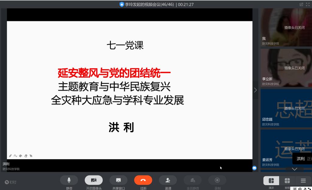 为庆祝伟大的中国共产党建党九十九周年,进一步巩固“不忘初心、牢记使命”主题教育成果,71日晚,学校副校长洪利为电控学院全体教工党员讲了一堂主题为《提高政治意识,强化师德师风》的党课。此次党课以线上方式开展。