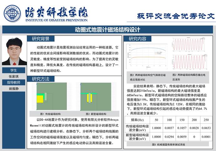 5月23日,本届大会程序委员会以视频方式召开全体会议,会议表决确定了52个分会场答辩专家组推荐的优秀毕业设计(论文)和PPT。张家琪同学的毕业设计论文《动圈式地震计磁场结构设计》和何昊阳同学的毕业设计论文《基于拓扑优化的差容式地震计机械摆结构优化设计》获得与会专家的一致好评,入选优秀毕业设计论文,体现了威廉希尔官网测控专业“立足行业、强化实践、协同创新”的育人理念。