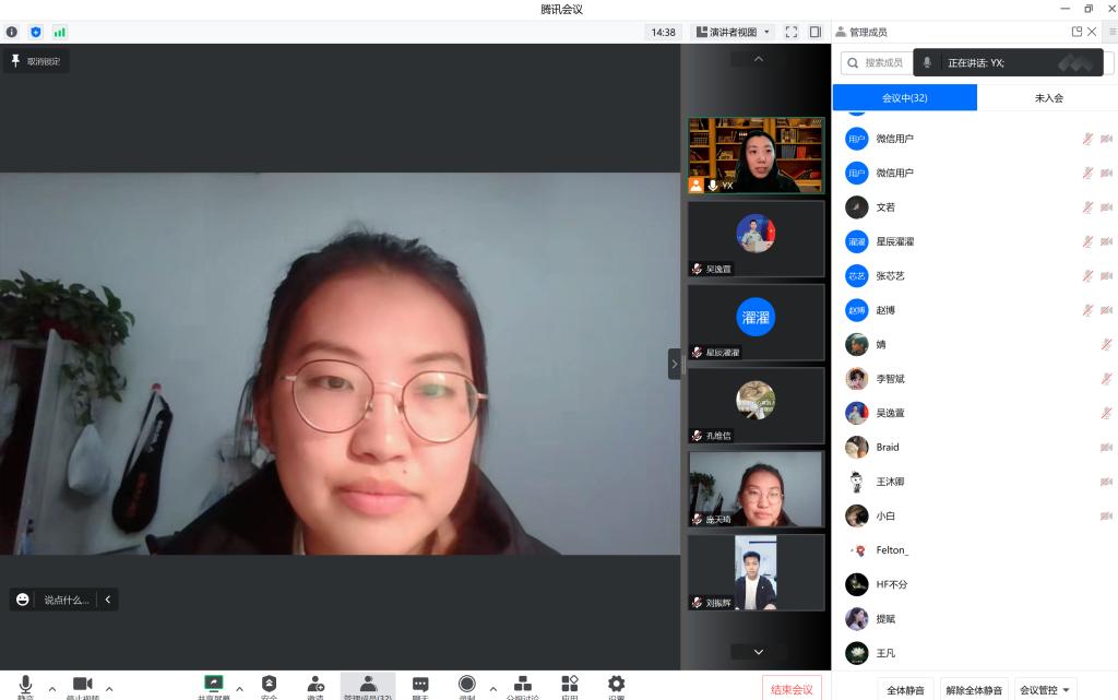 刘振辉分享了自己考研和读研经验,提醒大家考研不要盲目跟风,特别是不要为了考研而考研;何昊阳分享了如何确认自己的去向;庞天琦介绍了自己的经验,提醒同学们珍惜应届生的身份;李智斌建议大家求职一定要积极主动、多参加招聘会;孔维信以STAR的目标定位和推进工作方法来实现自己的就业。受邀的往届毕业生还就毕业班同学的问题进行了解答。