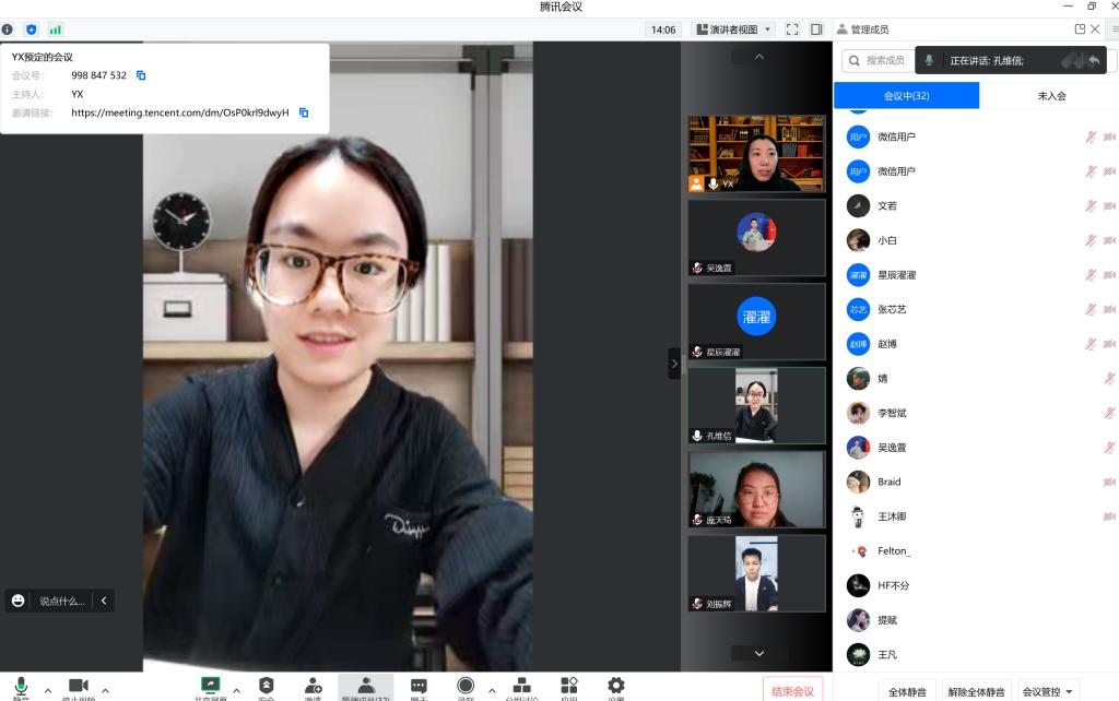 为大力帮助2023届测控毕业生升学和求职就业,测控技术与仪器专业于4219时至20时以腾讯会议的形式召开了“毕业生就业经验分享会”。毕业班辅导员胡治国、2019级测控专业同学,邀请到往届毕业生刘振辉、何昊阳、庞天琦、李智斌、孔维信为大家分享经验,分享会由测控教研室主任吴燕雄主持。