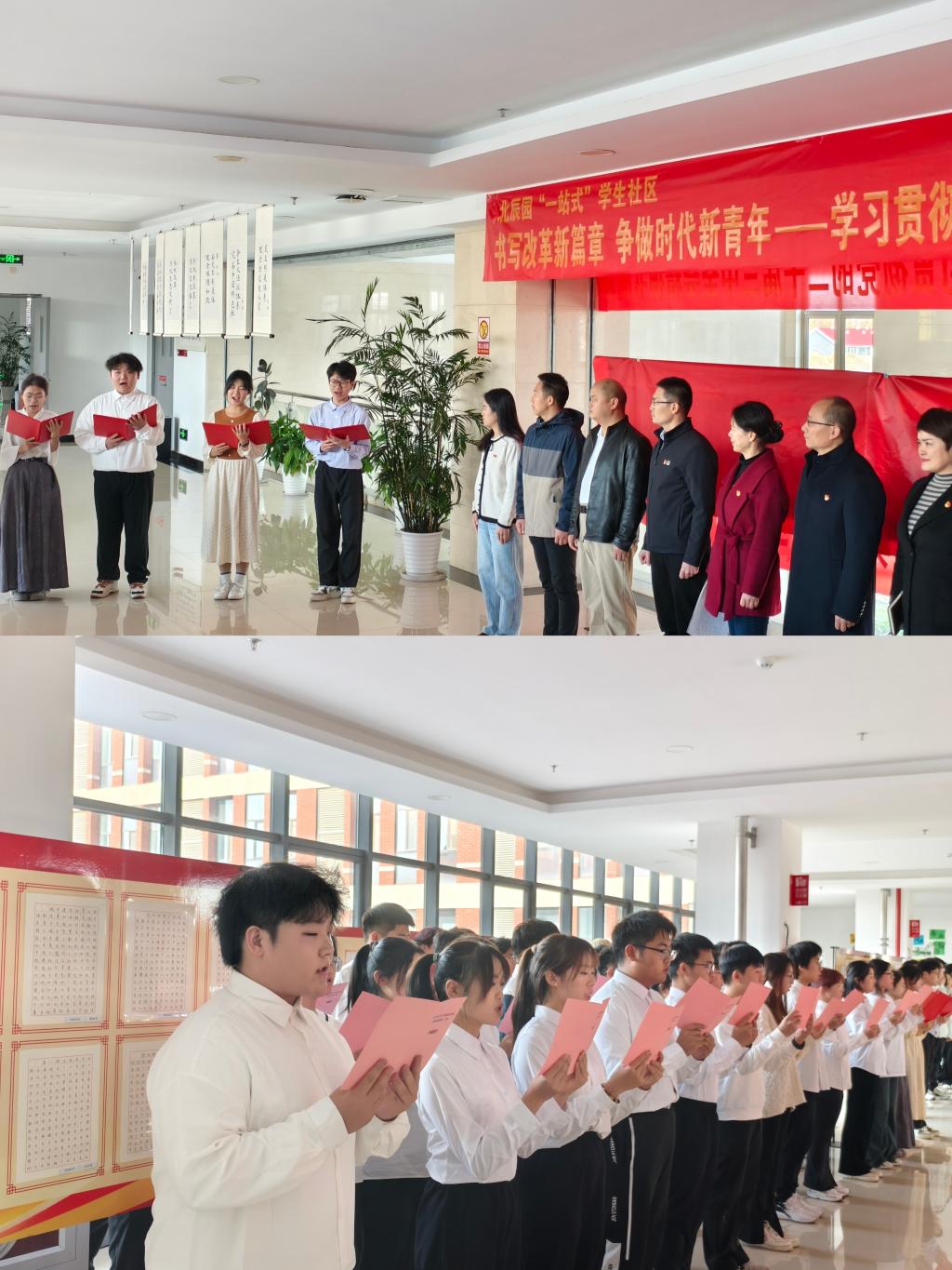 11月18日,学校地球科学学院、生态环境学院、地质工程学院、威廉希尔体育、信息工程学院五个学院党总支结合北辰园“一站式”学生社区建设,联合举办“书写改革新篇章 争做时代新青年”——学习贯彻党的二十届三中全会精神书画展。