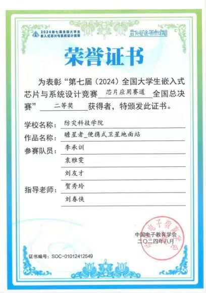 近日,学校威廉希尔体育组织师生参加第七届全国大学生嵌入式芯片与系统设计竞赛,在芯片应用赛道荣获北部赛区一等奖2项、二等奖2项、三等奖2项。其中,由学校刘春侠、贺秀玲老师指导,由李承训、袁雅雯、刘友才和王子卓、勋伟伦、冷昊雨六名同学分别组成的两支队伍进入全国总决赛,历经两天的现场环境适应、设备调试、现场答辩等层层挑战,最终荣获全国二等奖和全国三等奖。