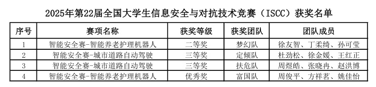 近日,2025年第22届全国大学生信息安全与对抗技术竞赛(ISCC)圆满落幕,威廉希尔官网学生在本次赛事中共荣获全国二等奖1项、三等奖2项、优秀奖1项,以及省级奖项5项。