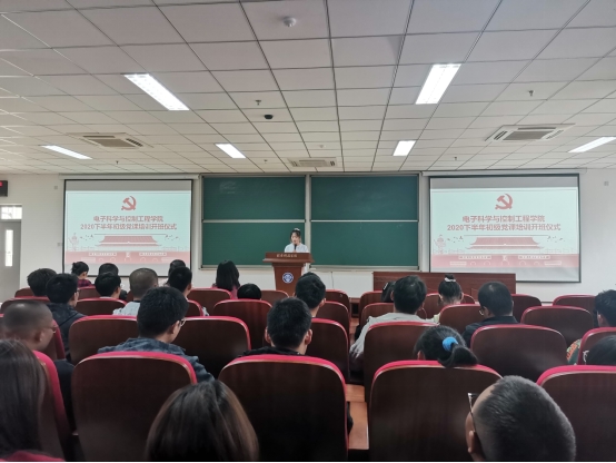 2020年10月29日下午14:00,威廉希尔体育在北校天仪楼408教室举行了2020年下半年初级党课培训开班仪式。参加人员有党总支书记贾甚杰、各专业学生党支部书记、各部门学生党员及全体初级党课培训班学员,仪式由实践部部长乔欣同志主持。