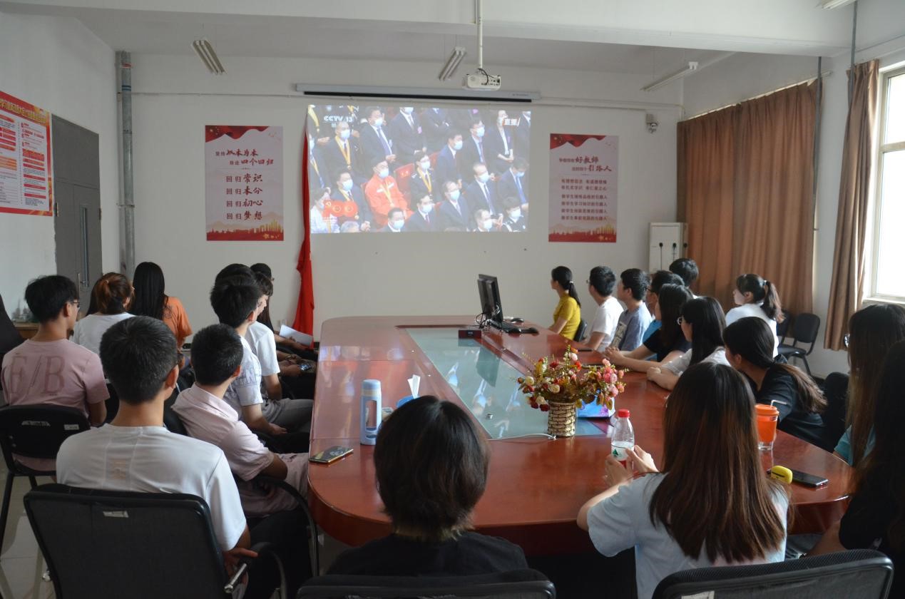 2021年6月29日上午10时,“庆祝中国共产党成立100周年‘七一勋章’颁授仪式”在人民大会堂隆重举行。中共中央总书记、国家主席、中央军委主席习近平首次颁授“七一勋章”并发表重要讲话。威廉希尔体育党总支组织学院师生党员在长庚楼420会议室集中收看了直播。