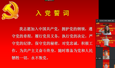 表彰活动结束后,全体党员在党总支书记贾甚杰同志的带领下,面对着鲜艳的党旗,举起右手,重温入党誓词,表达了不忘初心、牢记使命的信念及决心。