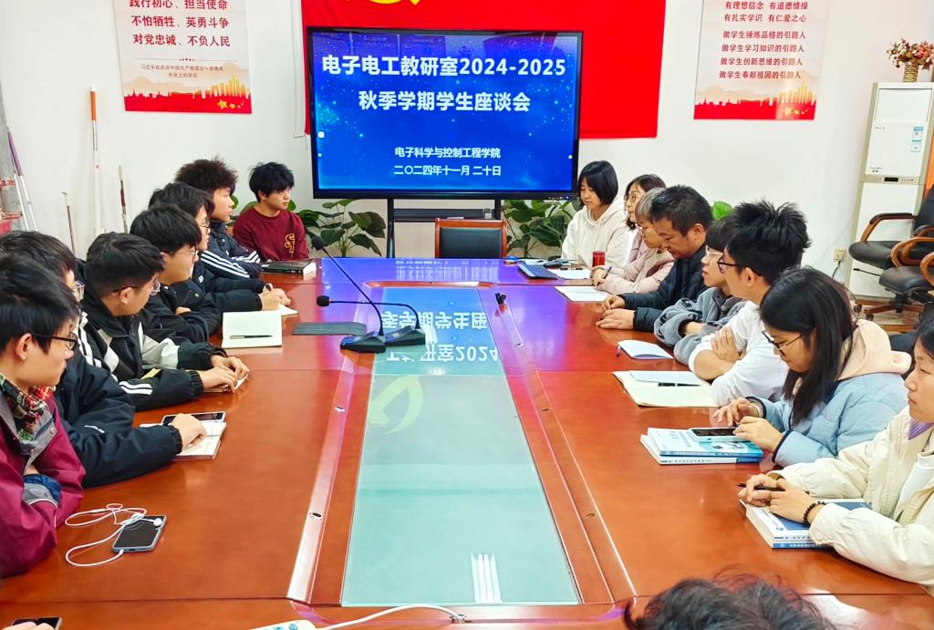 为及时掌握学生学习状态,更好的帮助学生解决他们在学习电子电工相关课程时遇到的困惑,提高其学习质量,电子电工教研室于11月20日上午在长庚楼420举办期中师生座谈会,会议由教研室主任姜运芳主持,专业教师及授课年级学生代表参加会议。