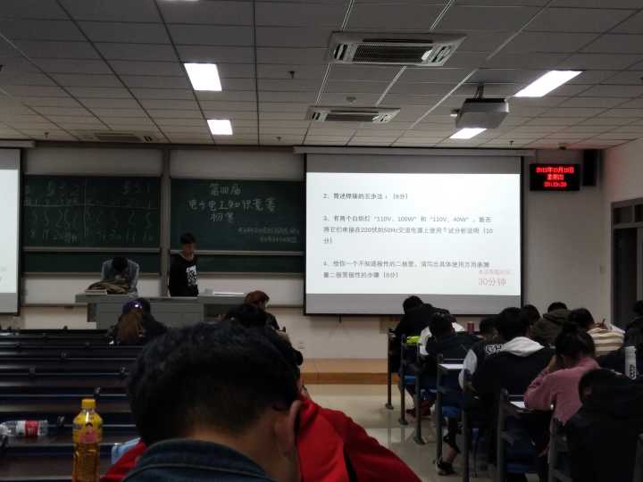 初赛采取PPT投放试题并计时的方法,分别于10月18日中午12点30和晚上7点20在天仪楼210、306等教室进行比赛,共有403人(35支队伍和我院18级全体学生)参加此次初赛。