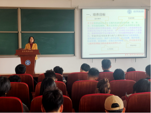 李立新老师从基本目标、专业领域、职业特征、人才定位四个角度讲述了电气工程及其自动化专业的人才培养目标,并列举了往届毕业生的就业情况,向新生介绍了本专业的就业方向。在专业学习和学业规划方面,她向新生详细地介绍了本专业学生的毕业要求以及课程和教学计划安排,解读了各培养模块、培养环节与培养目标之间的逻辑关系,让新生更好地了解本专业教学培养方案。