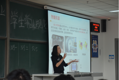 吴燕雄老师从课程体系及教学计划安排、考研或就业方向、大学生涯规划三个方面介绍了测控技术与仪器专业。在这个万物互联的时代,本专业可以应用到航天军工、工业设备运营状态监测、智能仪器、机器人等诸多行业,并从基础课、选修课、通识课三个模块向同学们详细介绍了该专业的课程体系。最后,吴老师教导同学们在大学的学习中应厚积、忘我,合理规划未来,明确奋斗目标,尽情挥洒青春的汗水。