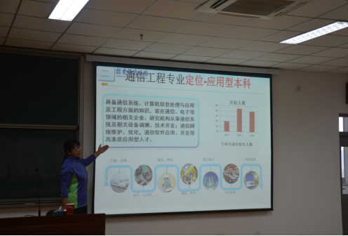 贺秀玲老师首先对通信工程专业做了全面概括和细致介绍,对通信专业“可软可硬”的发展方向和应用型特征进行了论证。接着,她向同学们介绍了我院通信工程专业的人才培养与师资培养现状,展示了专业人才培养的计划,为同学们的大学四年的专业学习给出了详细的规划。最后,贺老师教导同学们应如何充实地度过大学生活:一名优秀的大学生应合理规划时间,确立目标,承担责任,挑战自我。