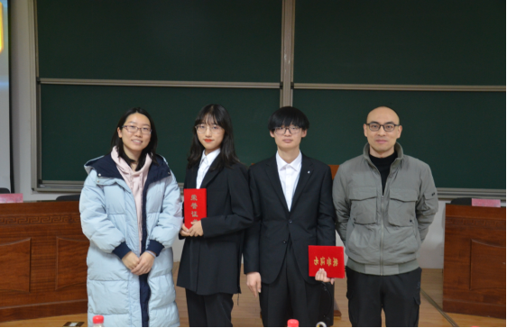 最后阎光耀老师为大家点评了本届辩论赛,指出了辩手的优点和不足,并给予了相应的建议,鼓励大家多多参与活动。随后主持人宣布了本场的冠军为200522班代表队,亚军为200533班代表队,季军为200511班代表队,最佳辩手是邢豪杰同学和王楚涵同学,最后由老师为最佳辩手和获奖团队颁奖,主持人宣布本次辩论赛圆满落幕。