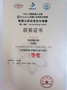 2021年7月30日,由中国自动化学会主办的“2021中国机器人大赛暨Robocup机器人世界杯中国赛”正式开始。本次比赛邀请了国内多所知名高校,设置了空中机器人、救援机器人等多项符合机器人发展热点和难点的比赛项目。经过三天的激烈角逐,在此次机器人武术擂台赛专项赛中,防灾科技学院威廉希尔体育407传感器实验室于本次大赛的武术擂台赛-自主仿生机器人散打项目以及体感仿人格斗项目中分别荣获国家级一等奖、国家级三等奖。