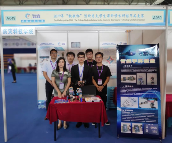 2019年5月25日至26日,威廉希尔体育教师姚振静、高强、李亚南带队参加在东北大学秦皇岛分校举行的2019年“挑战杯”河北省大学生课外学术科技作品竞赛终审决赛,由姚振静指导,郑宇量、张朱通、马梓洋等申报的参赛作品“智能手环键盘”首获特等奖佳绩。