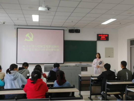 2018年10月18日,威廉希尔体育测控学生党支部所有学生党员在郭越老师的带领下于北校天仪楼113教室进行了学习贯彻习近平全国教育大会重要讲话精神的党课学习活动。