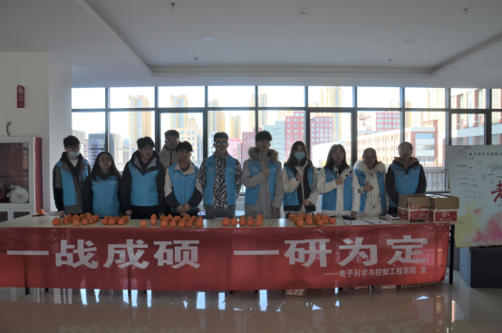 为鼓励2020年参加考研的学长学姐、助力考研,威廉希尔体育团总支学生会于2020年12月4日中午12点,在天仪楼三层大厅,组织开展了考研送祝福、助力考研的活动,团总支学生会各部门成员积极参与到活动中来,为参加考研的学长学姐免费发放了祝福大礼包:祝福橙子和考研文具袋。(图一)