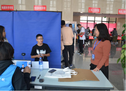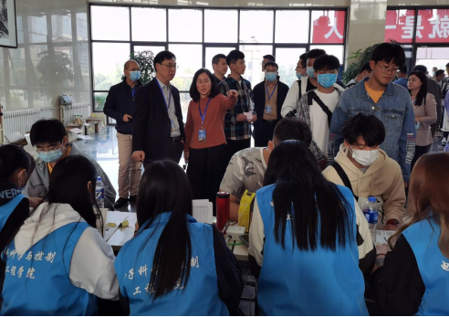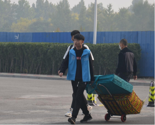 贾甚杰,蔡建羡,姚振静,阎光耀和郭越来到现场指导迎新相关事宜。第一天迎新工作于10月9日下午2点开始,迎新志愿者们一张张热情的笑脸,一句句亲切的问候,一项项贴心的服务,欢迎着来自祖国各地的莘莘学子。在每一趟车到站的时刻,新生和家长们一下车,志愿者们微笑着迎上去,并接下新生和家长们手中沉重的行李。