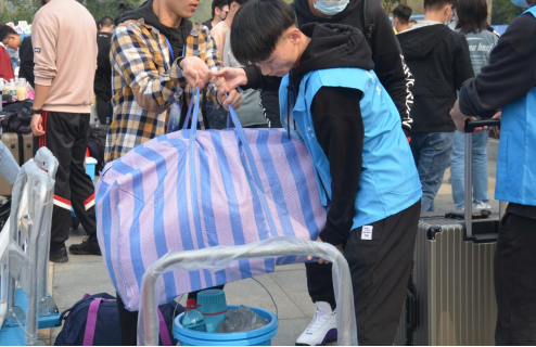 迎新工作如火如荼,到处都是忙碌的身影。接过行李,带领新生回到宿舍,一路谈笑风生,新生们细声地叫着“学长学姐”。安顿好行李后,志愿者们带领着新生前往报到处,志愿者们热情地回答着他们提出的问题,井然有序为新生们办理着报到事宜。随着时间的流逝,报到人流迎来了一波小高潮。